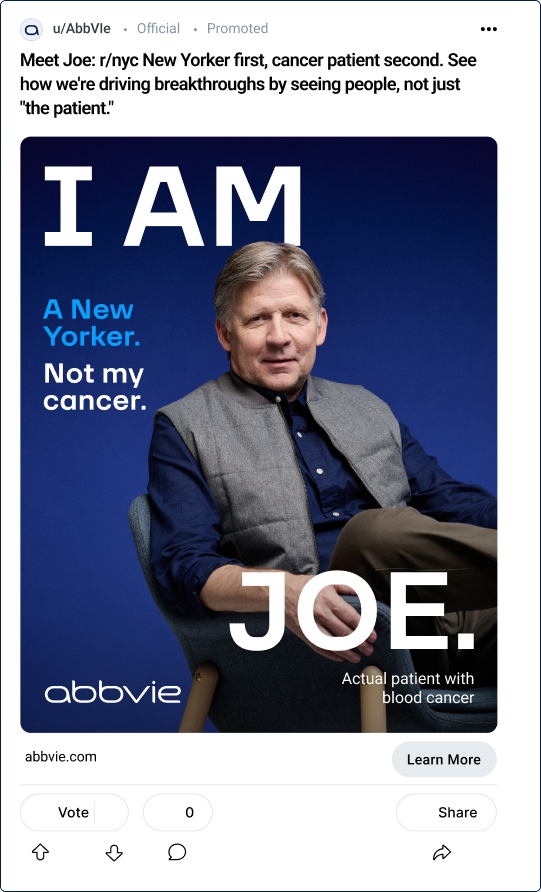 “I AM” put real people at the center — on billboards, on screens, and on sidewalks across the country. Real lives, real voices: The jewelry maker, not the psoriasis diagnosis. The college football fan, not the Crohn’s disease. The New Yorker, not the cancer diagnosis.